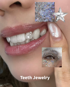 歯の表面に小さな宝石や金属のモチーフを特殊な方法で接着し、口を開くたび、笑うたびにキラリと光るアクセントを加えるこのスタイルは、自己表現と個性を重視する現代において、非常に注目されています。